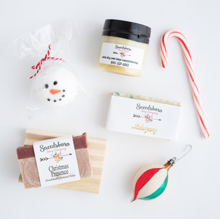 Super fun bath and body gift boxes for both kids and adults. Her kids' soap smells so good, I want to take a bite of it! (Smells like peppermint bark.)